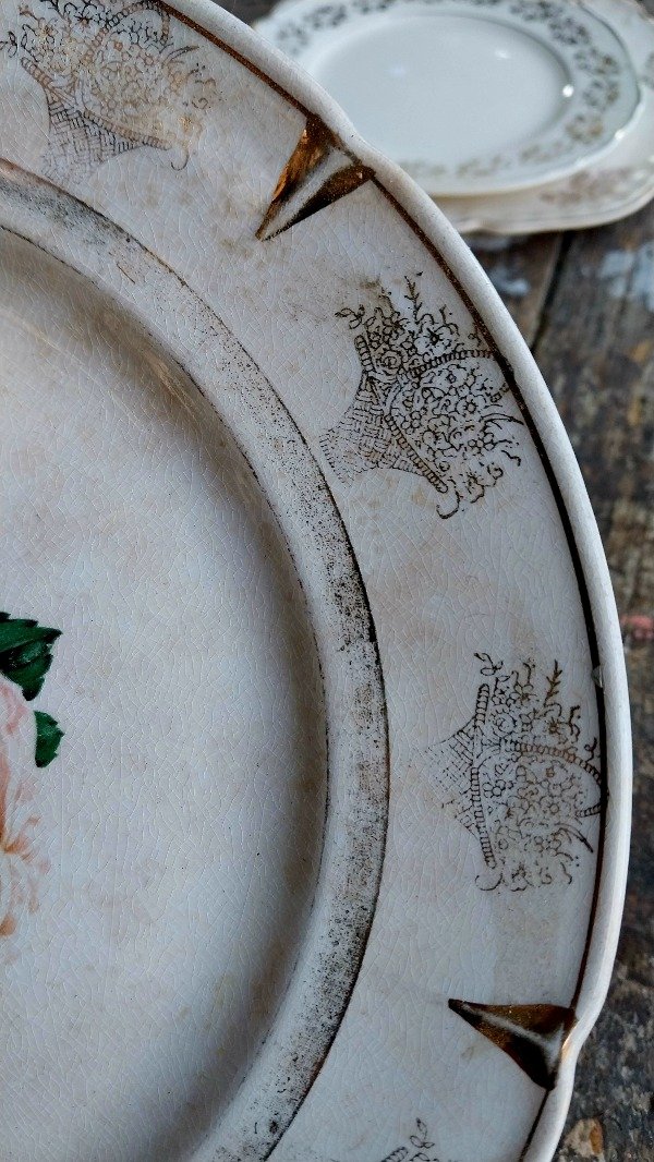 Plato con detalles en dorado y dibujos de rosas 🌹. Me recuerdan a un jardín Inglés 🥰