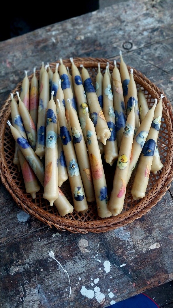 Velas de cera de abeja, hechas a mano artesanalmente por goteo.